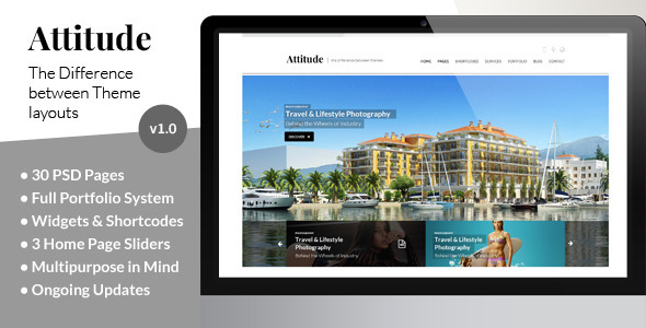 Attitude is the difference between a good and a bad Theme design, where design is not just shapes and colors, but user experience and interface usability! Attitude featured 30 PSD files based on Bootstrap 3 Responsive grid system. Modern color scheme packed with clean layouts and typography is going to be a solid base for any type of content or portfolio based website.