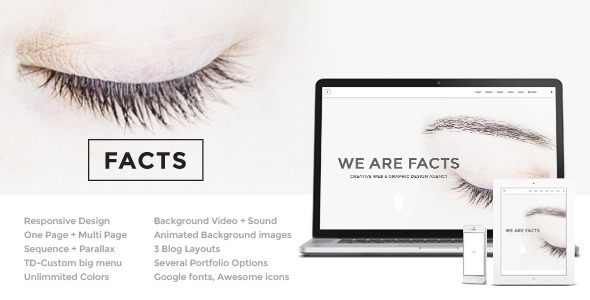 FACTS, Minimalist & Flexible Corporate, Creative, Photography WP theme.FACTS is a minimalist, complete and flexible WP theme that brings you unlimited options to set up a Corporate, Creative or Photography business including smashing TD Menus. Create the most spectacular and unique site in any color, font or language! Make use of Facts exquisite and unique Sequence and Boxed image features. Facts home page layout options are truly limitless. FACTS is Responsive, Mobile ready, Multilingual, and ready for Visual Composer, the Layer Slider including the TD-shortcode plugin with over 200 short codes. Make us of unlimited freedom in design, colors, and fonts. Create 1140 grid pages, full screen pages, or full width pages, and include transparent or colored (Parallax, Split or Boxed Image) sections. Design pages including header slider, background image, featured image, sidebars and footer sidebars. Go nuts with 8 page layouts, 6 sidebar options and (tiled) gallery post formats to choose from. Make use of TD-short codes, which you can use to animate and spice up your web pages. FACTS comes including example dummy content. This theme is built on a solid TD-framework and comes with a easy-to-use TD admin-panel where you can find almost all theme’s features well organized and at one place. Facts allows you to setup a Minimalist and unique looking site in just a day! We hope you will have lots of fun working with “FACTS”. |
