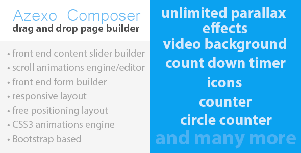 Azexo Composer is WordPress page builder plugin for user friendly front-end content editing of any type WordPress posts. It is based on jQuery, jQuery UI, Underscore and Bootstrap. The main difference from other solutions – Azexo Composer uses client JS for render of HTML to work faster and save server resources.